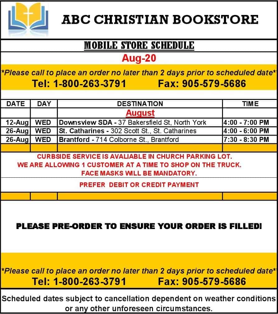 Please find below the time and location of the ABC Book Mobile. We highly recommend that you call prior to your visit (1-800-263-3791).