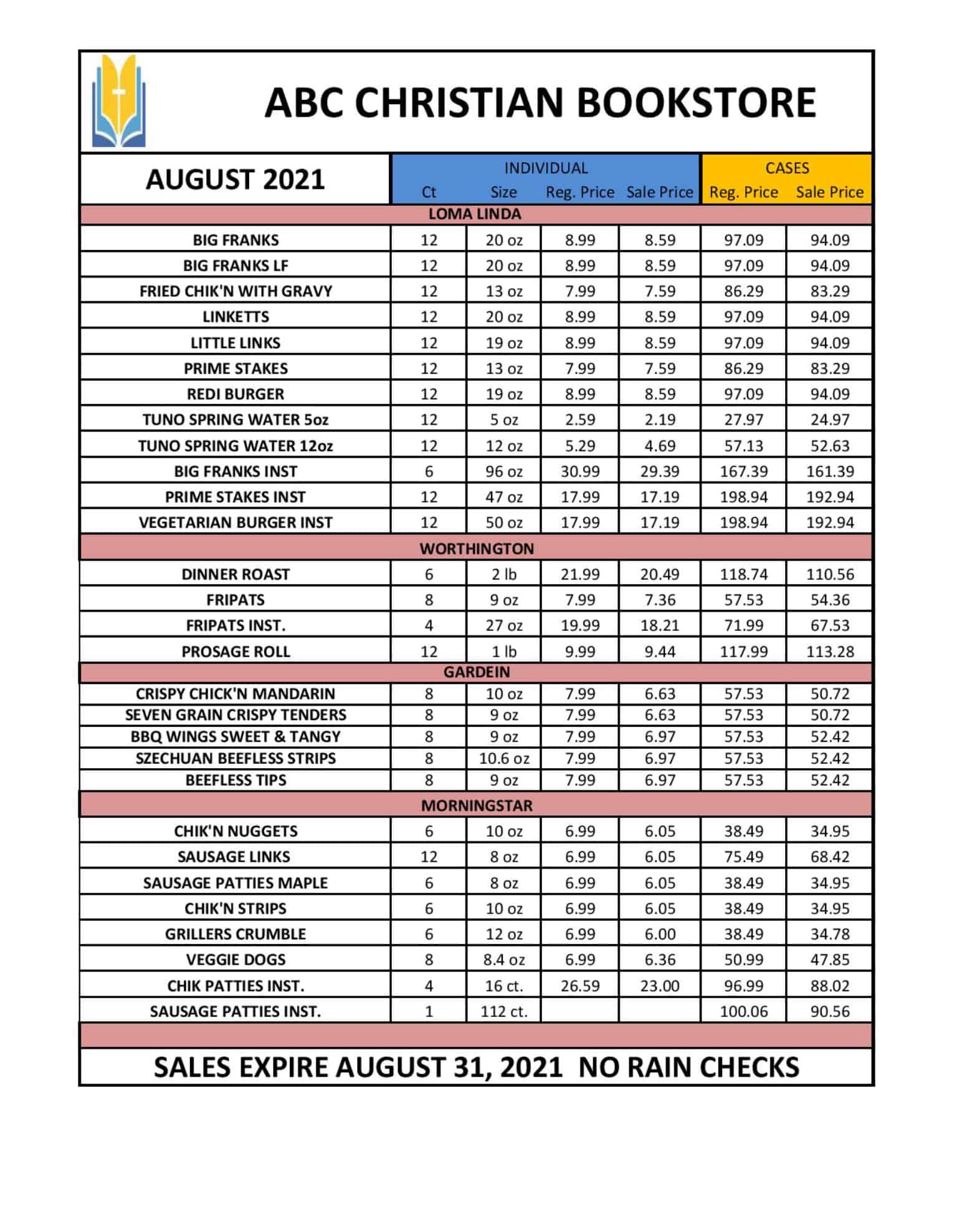 ABC Christian Bookstore August Food Flyer