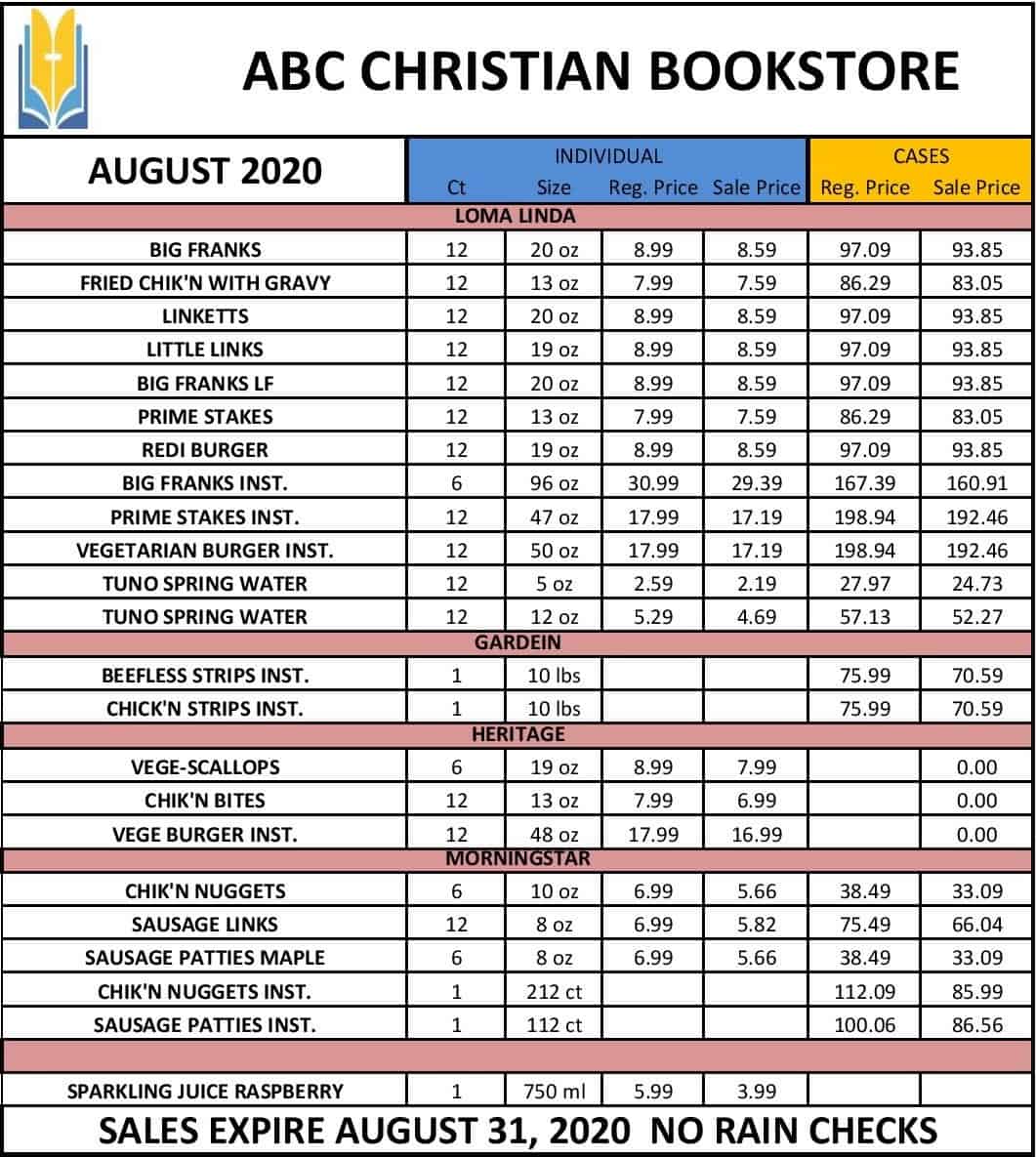 Here’s the updated list of products available at the ABC Christian Bookstore and current sales prices.