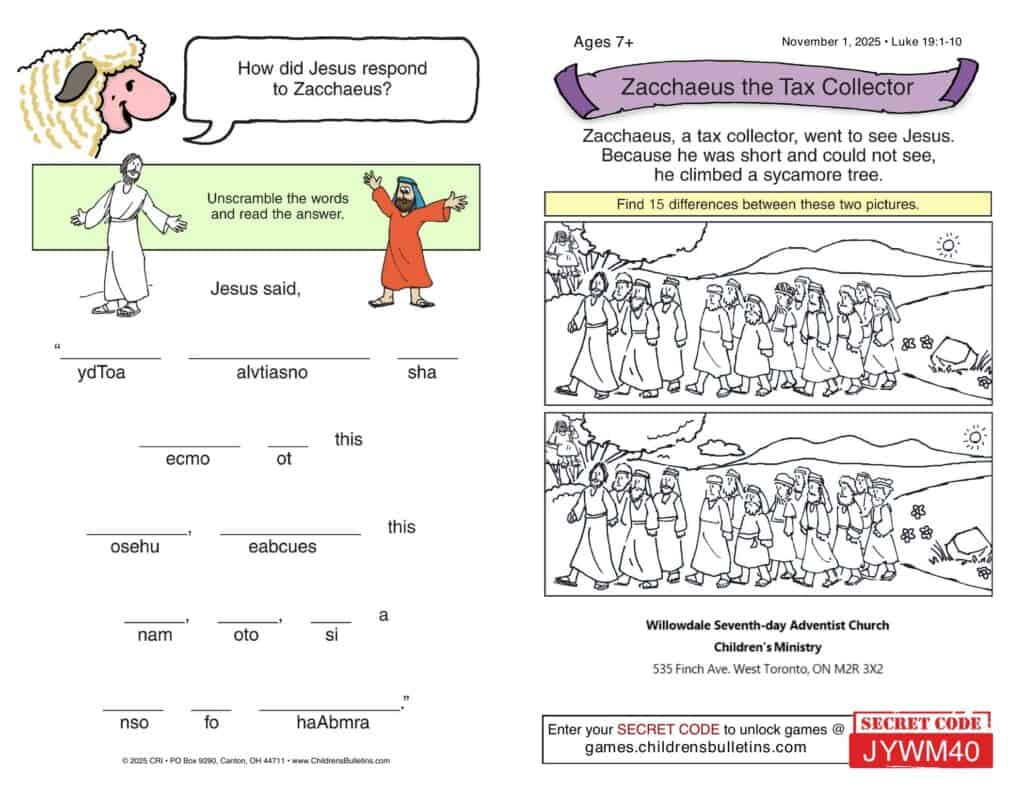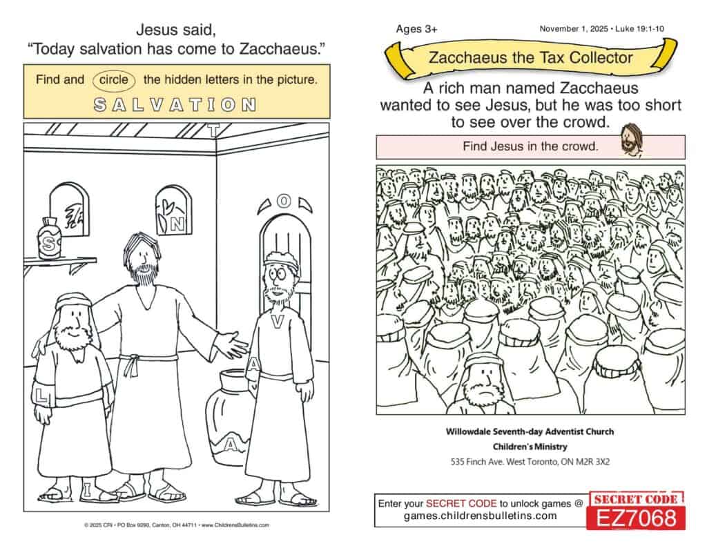 Children’s Worship Bulletins – Sabbath, November 01, 2025