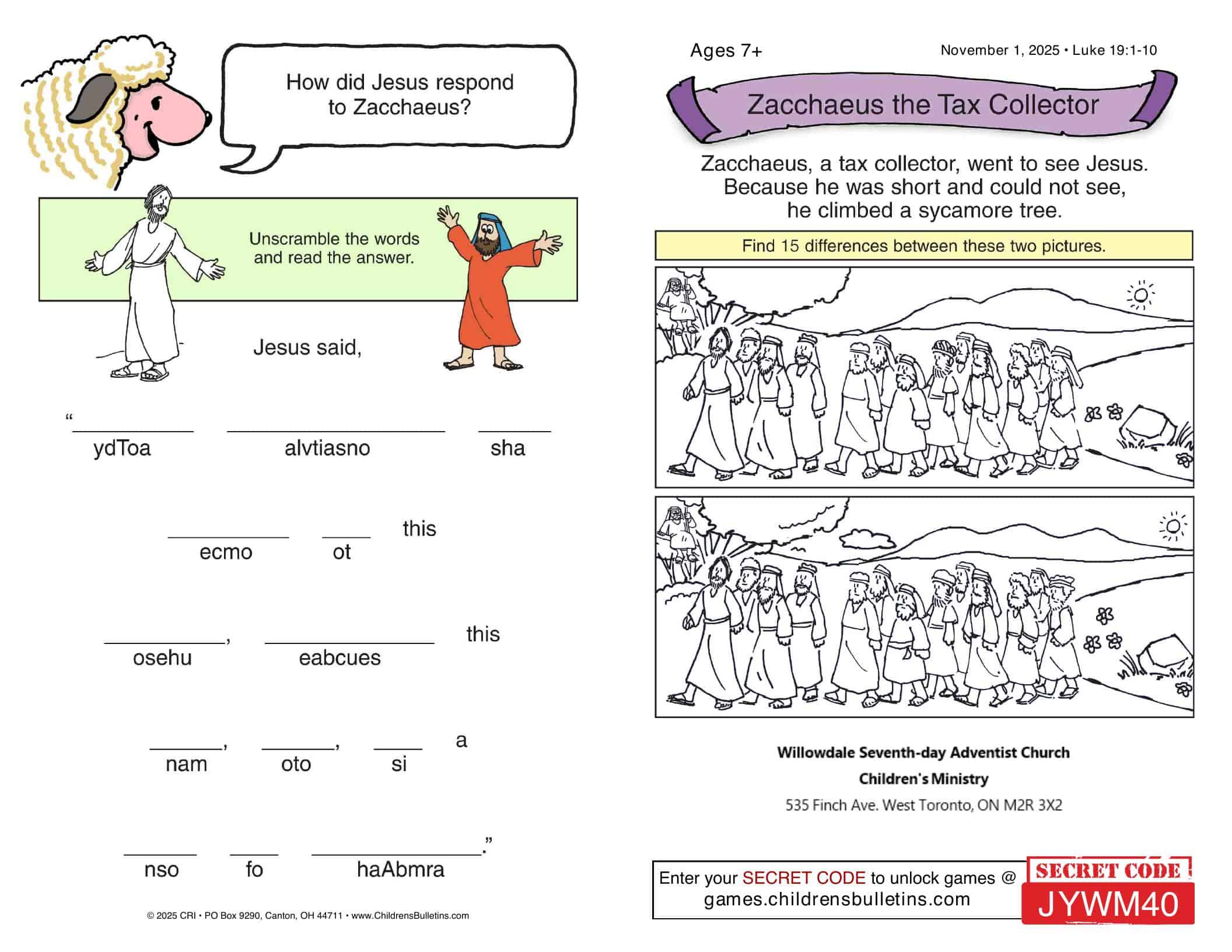 Children’s Worship Bulletins – Sabbath, November 01, 2025