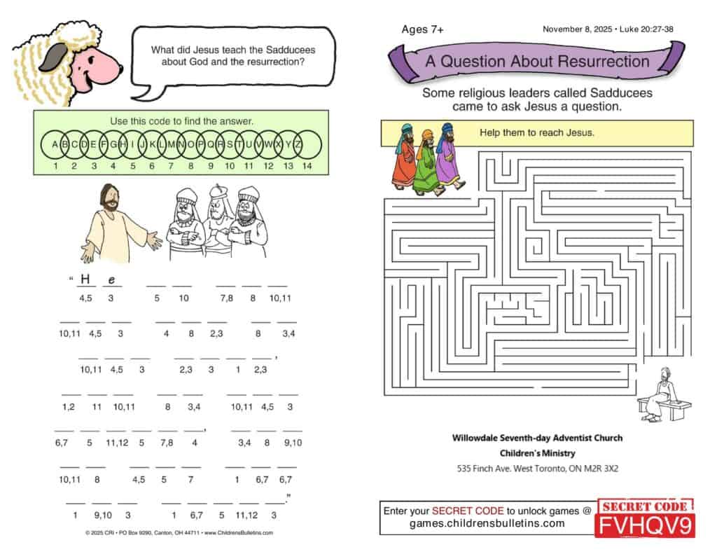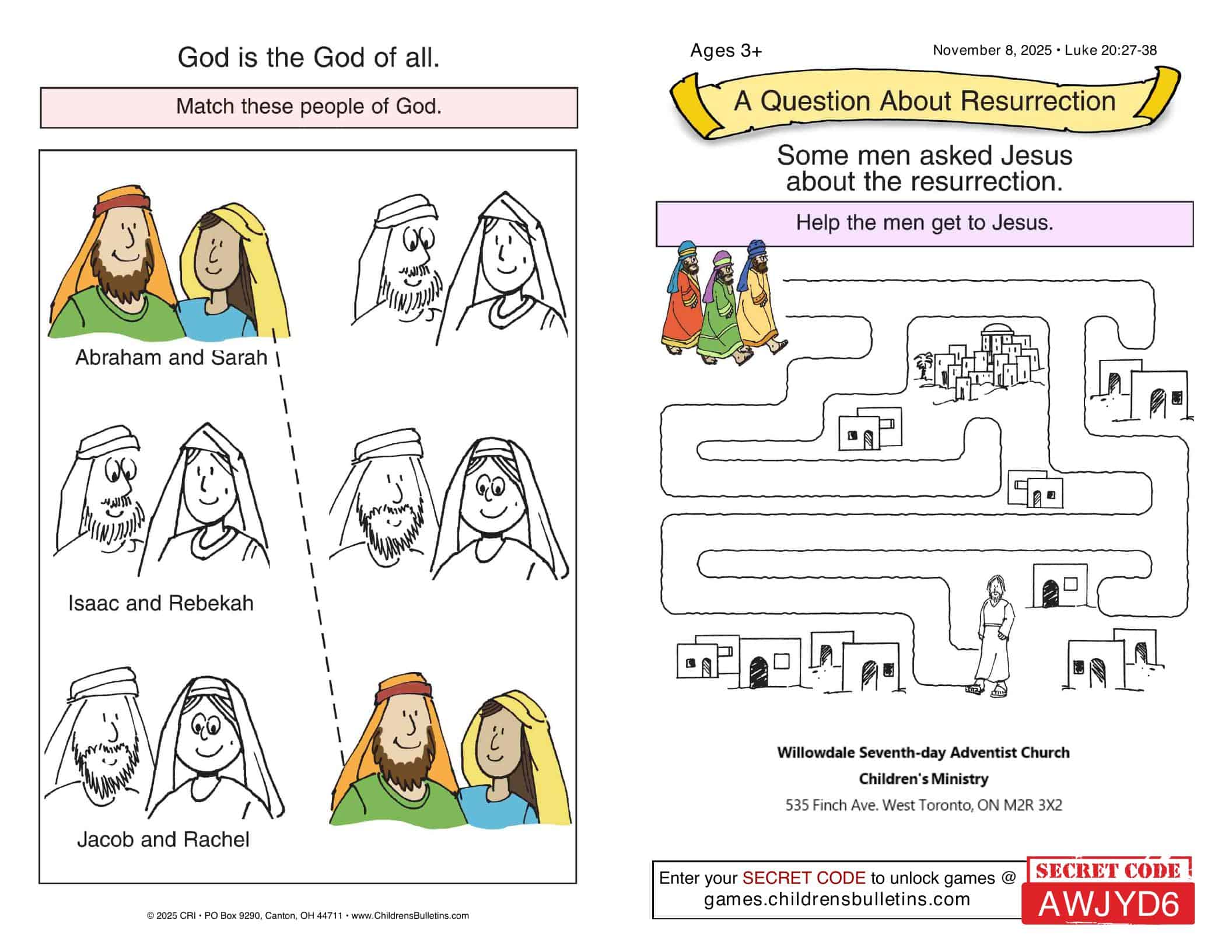 Children’s Worship Bulletins – Sabbath, November 08, 2025