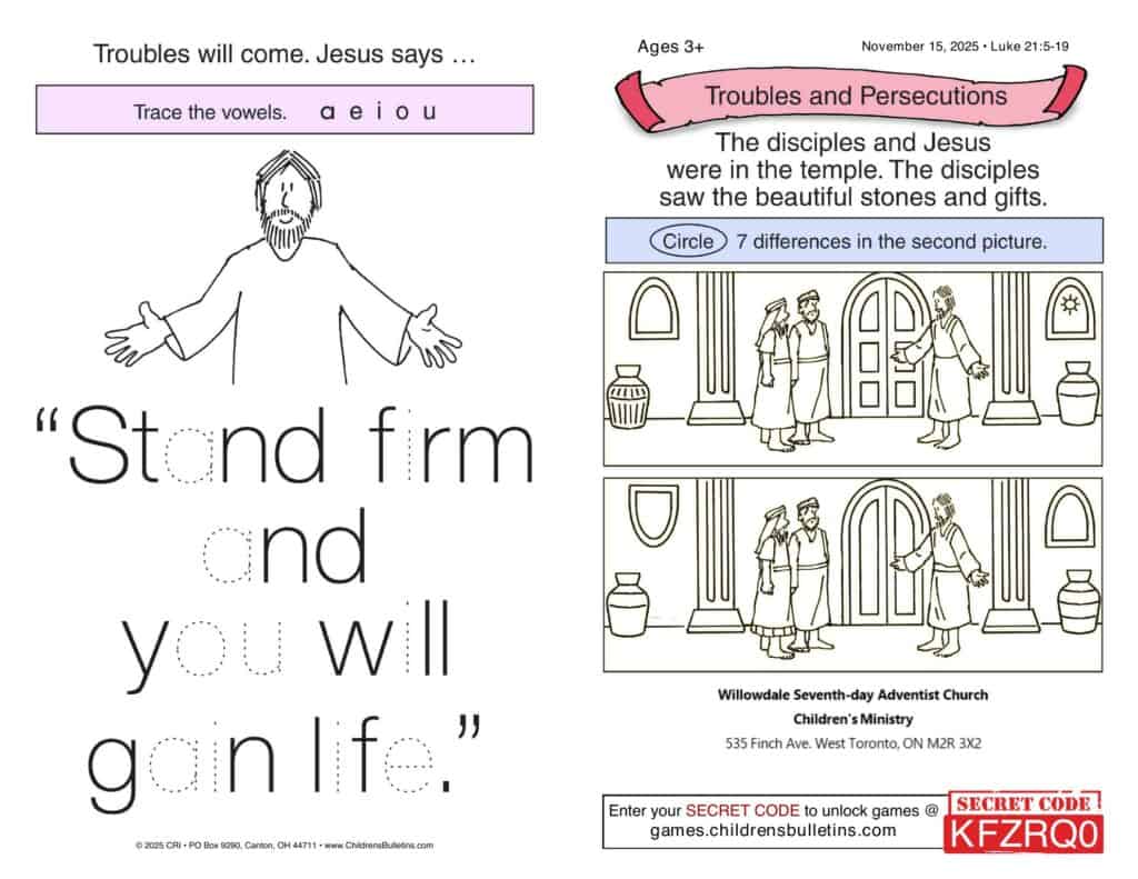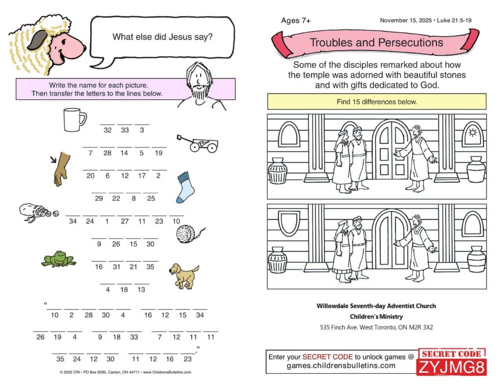 Children’s Worship Bulletins – Sabbath, November 15, 2025