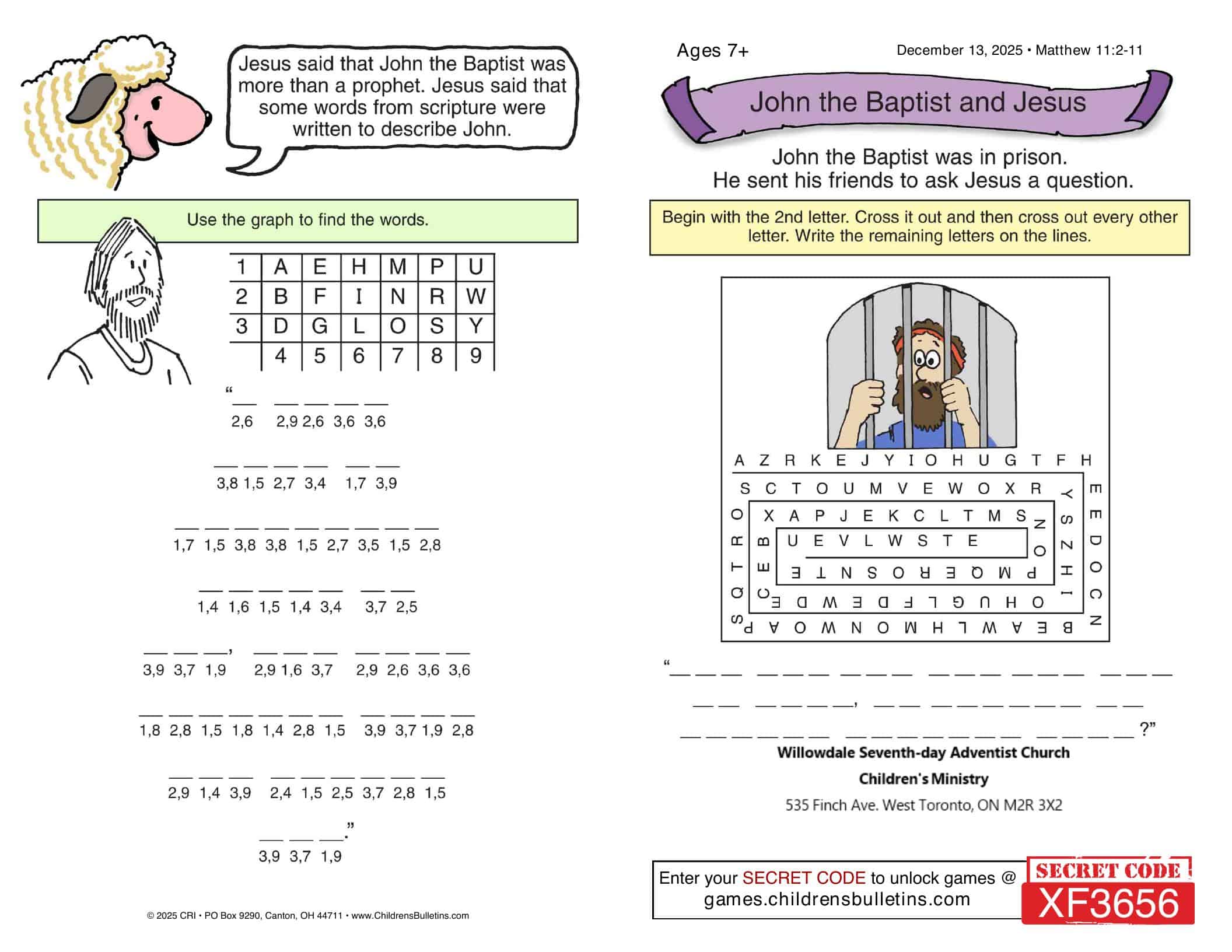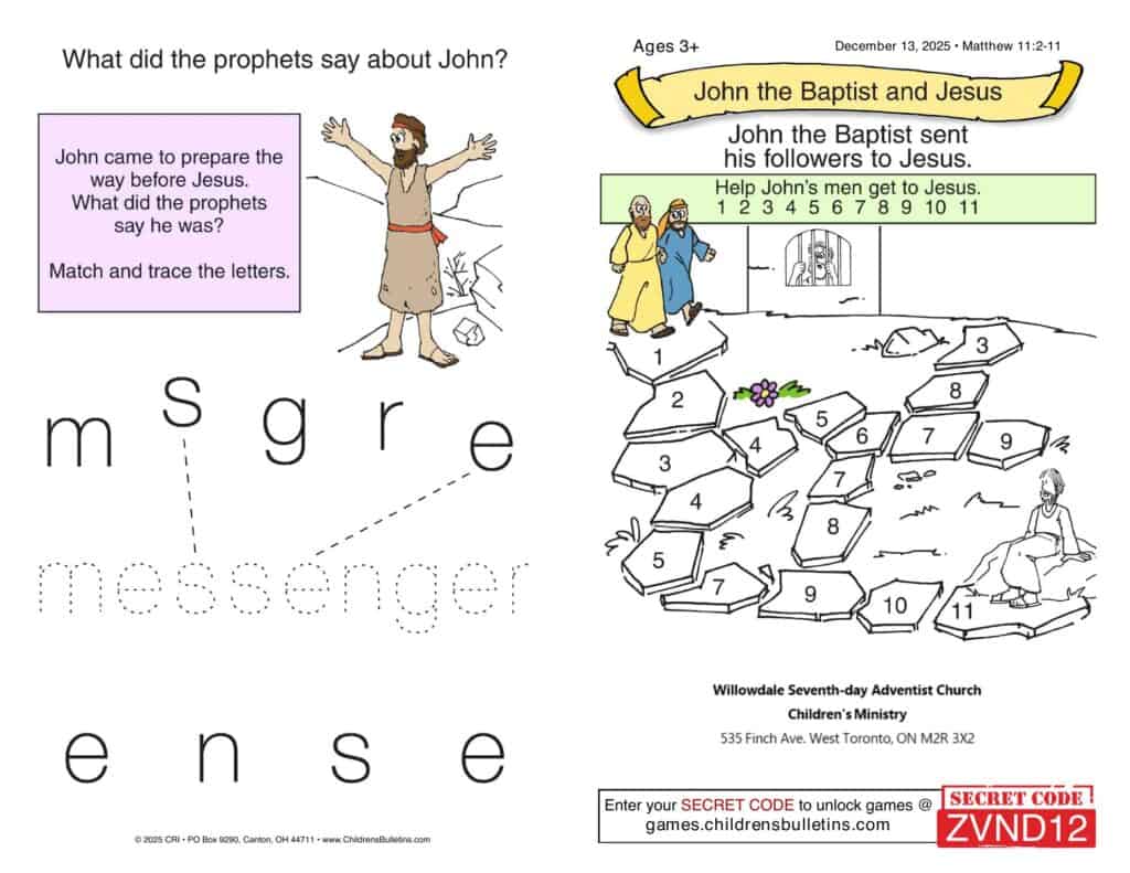 Children’s Worship Bulletins – Sabbath, December 13, 2025