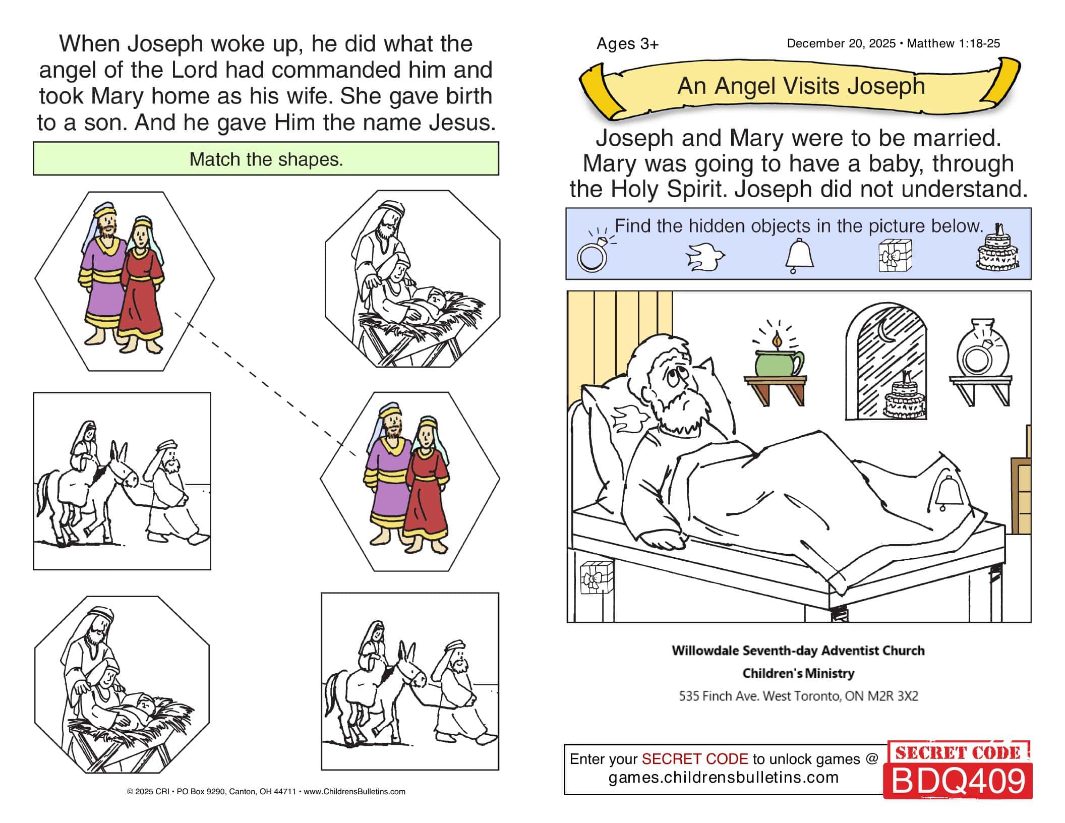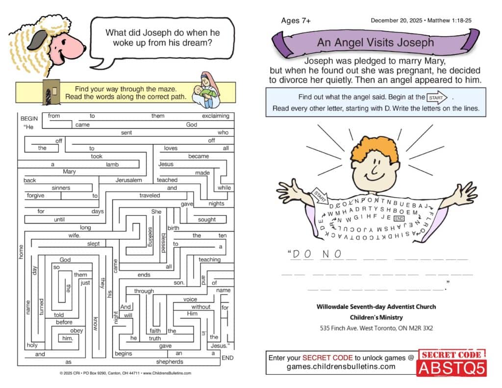 Children’s Worship Bulletins – Sabbath, December 20, 2025