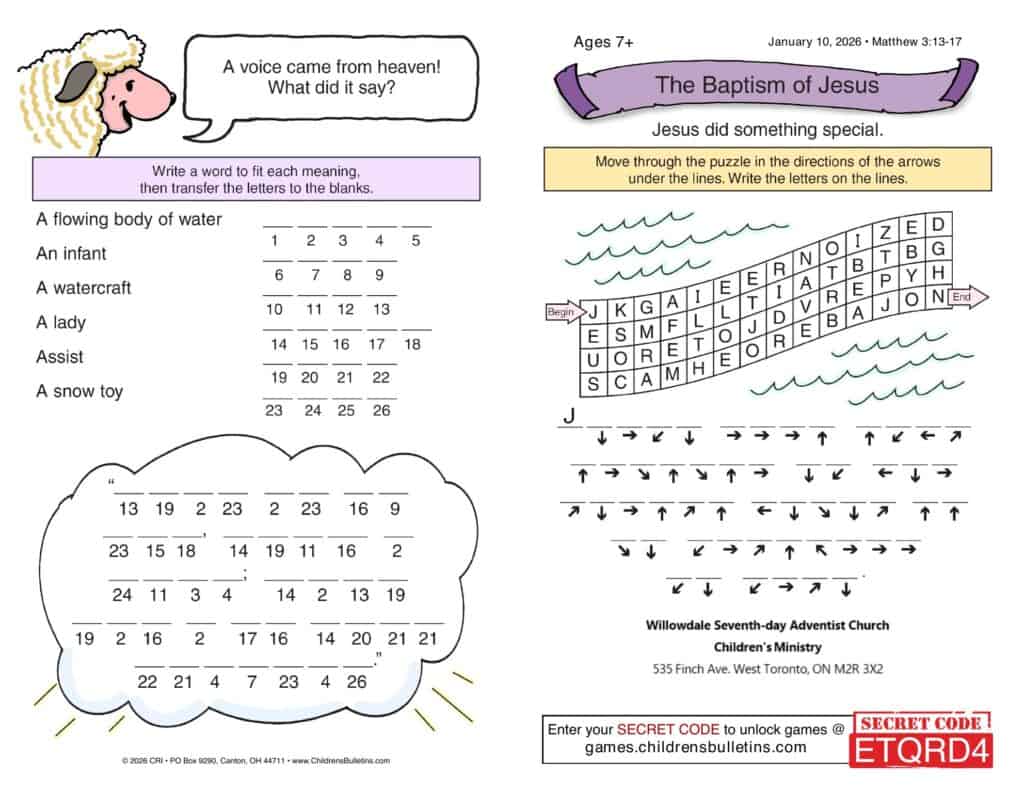 Children’s Worship Bulletins – Sabbath, January 10, 2026