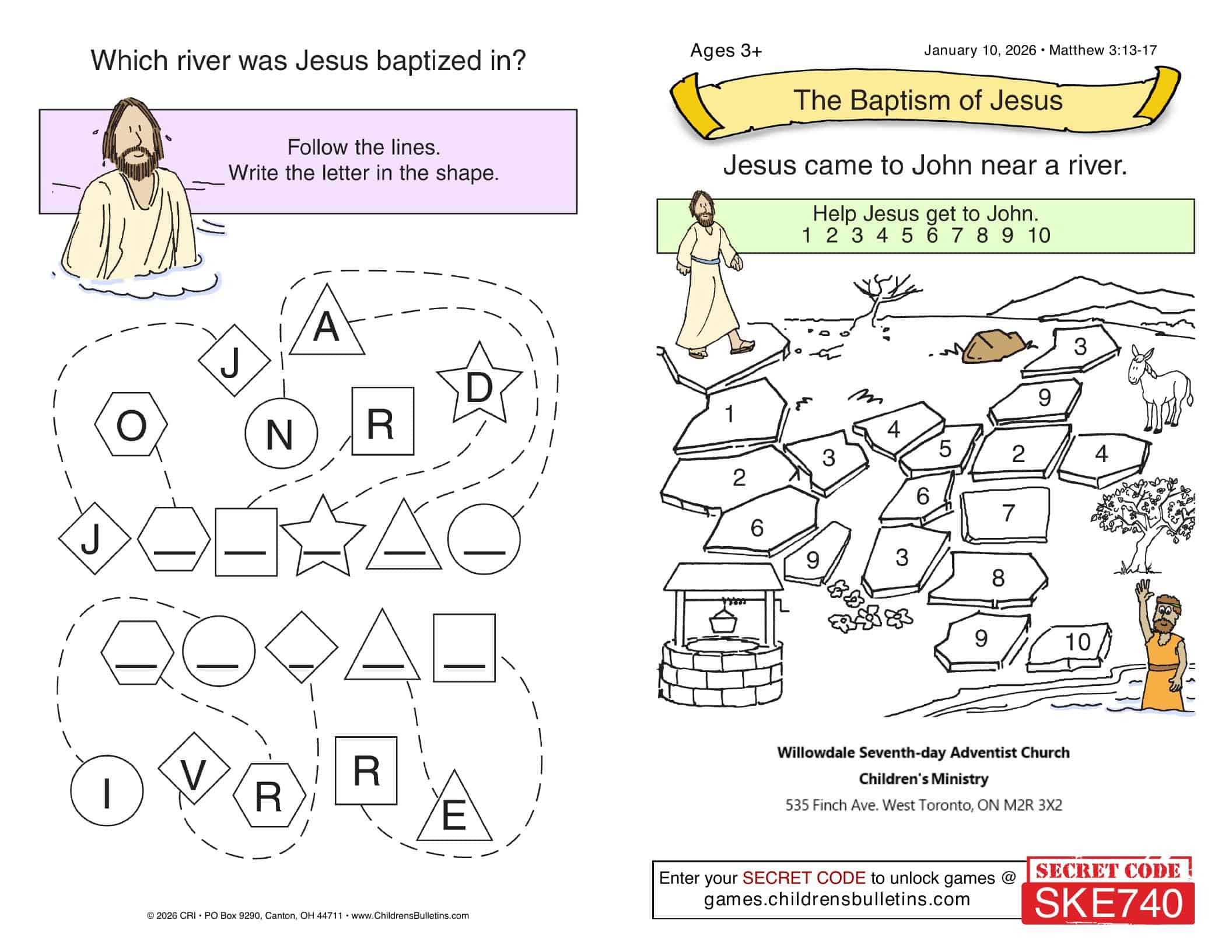 Children’s Worship Bulletins – Sabbath, January 10, 2026