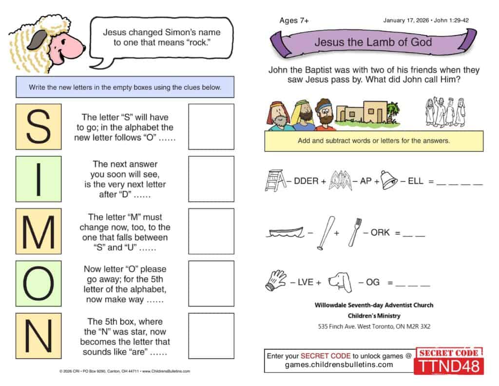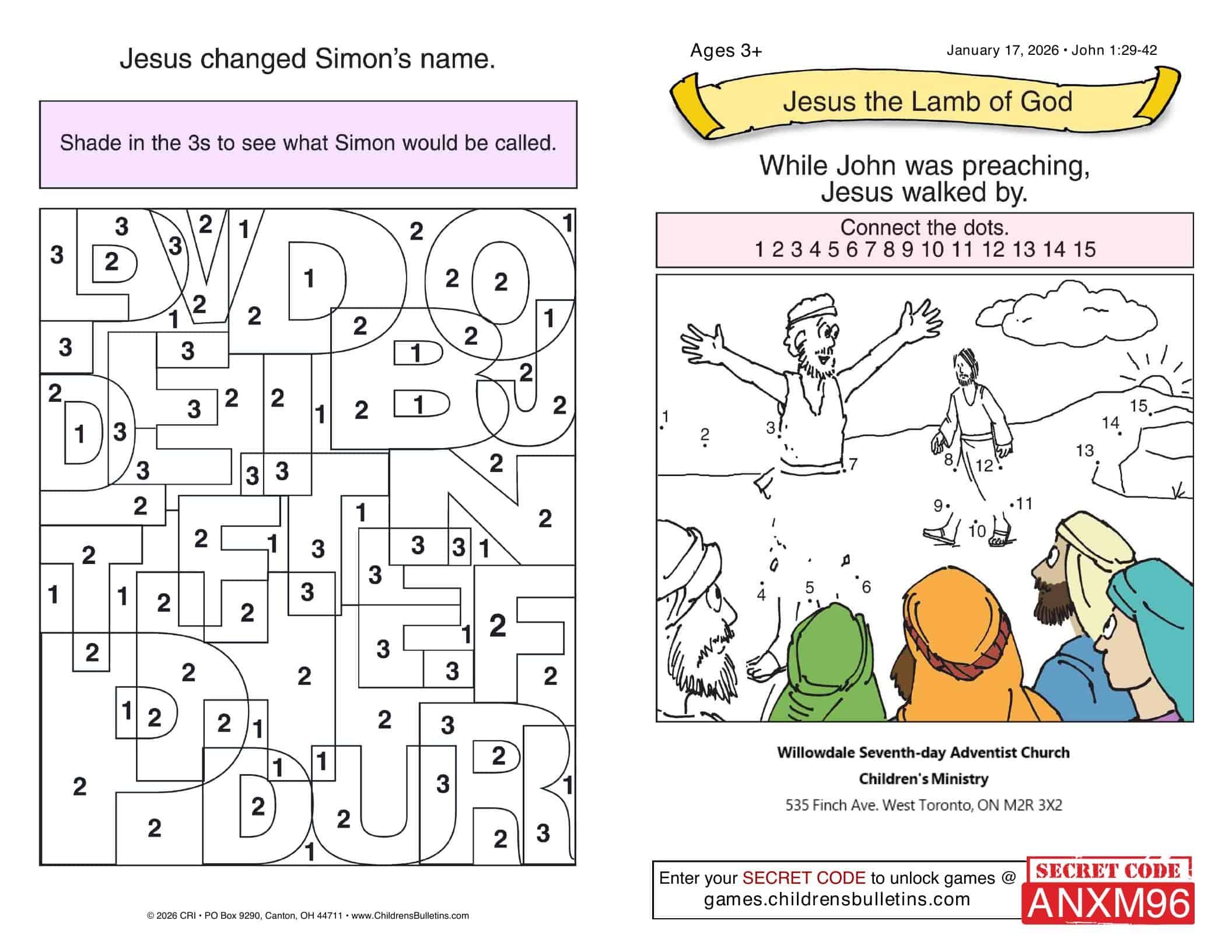Children’s Worship Bulletins – Sabbath, January 17, 2026