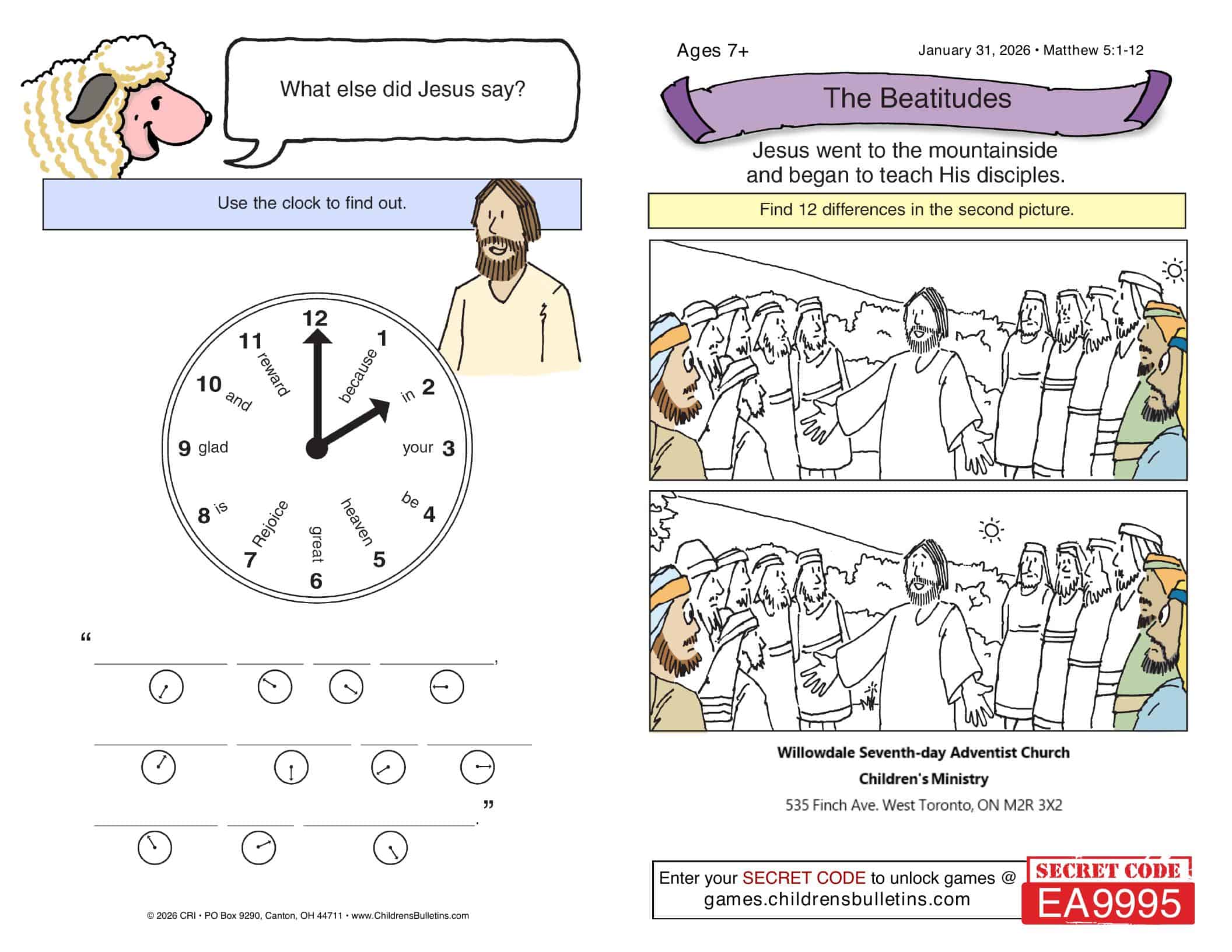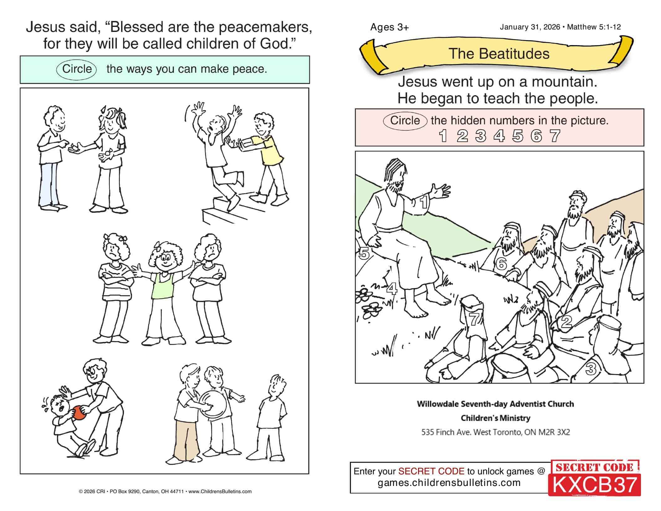 Children’s Worship Bulletins – Sabbath, January 31, 2026