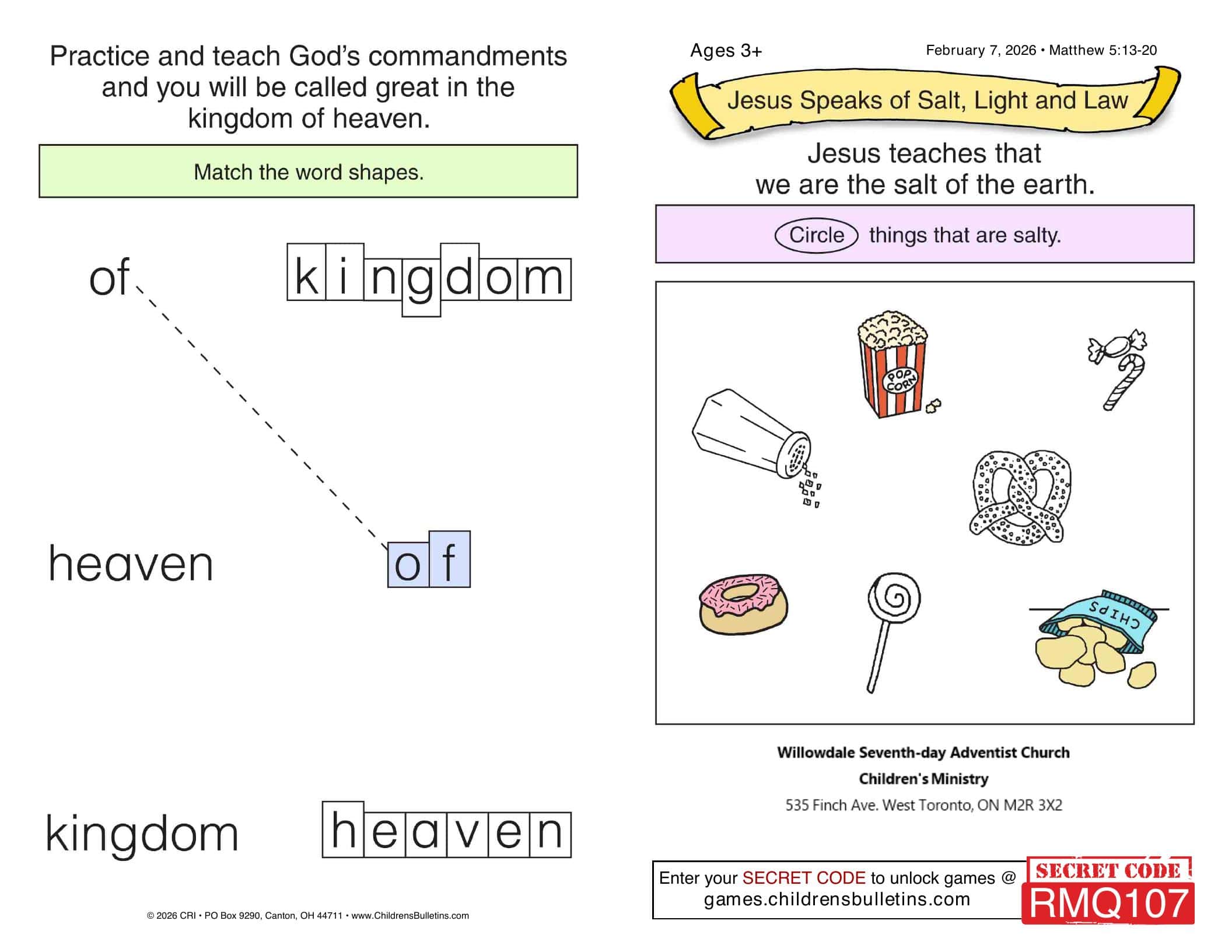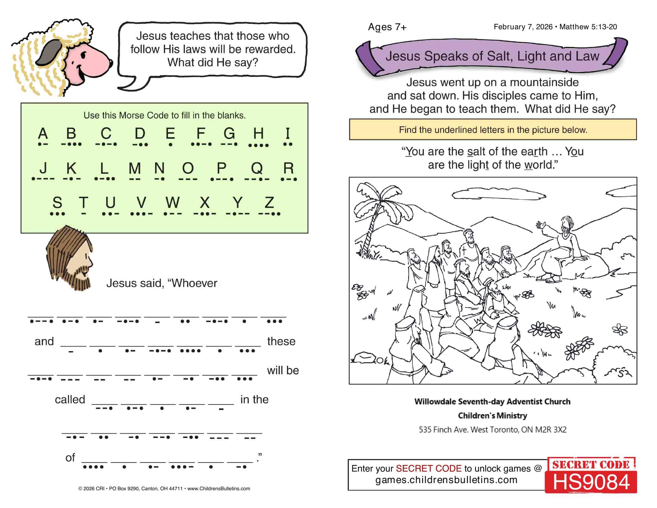 Children’s Worship Bulletins – Sabbath, February 07, 2026