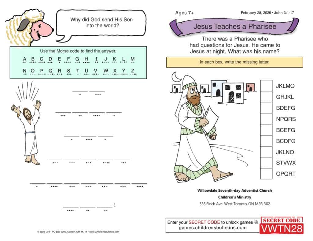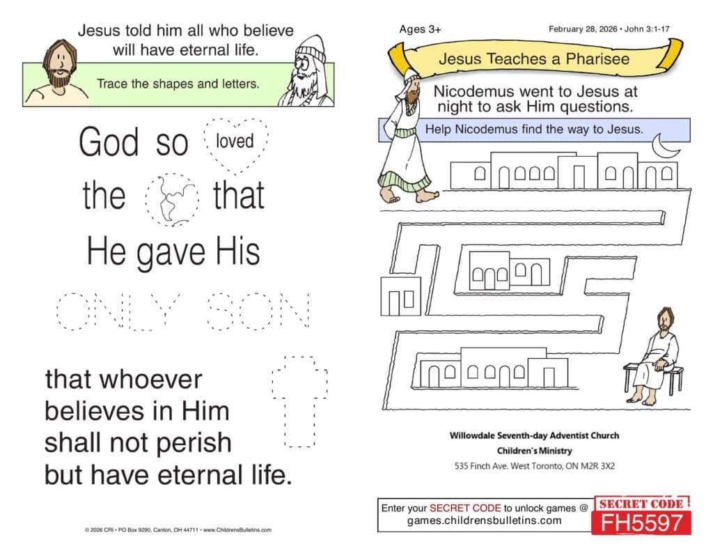 Children’s Worship Bulletins – Sabbath, March 28, 2026