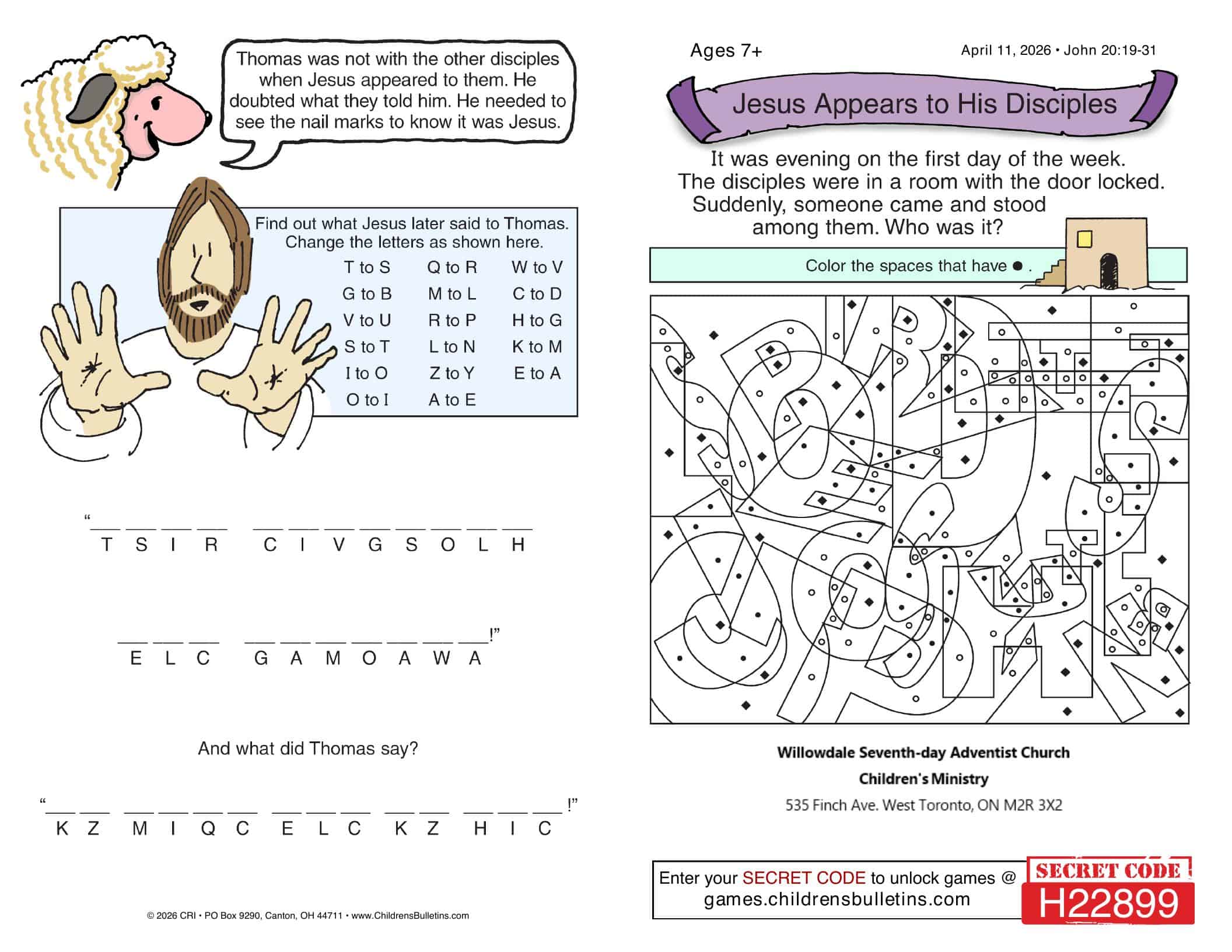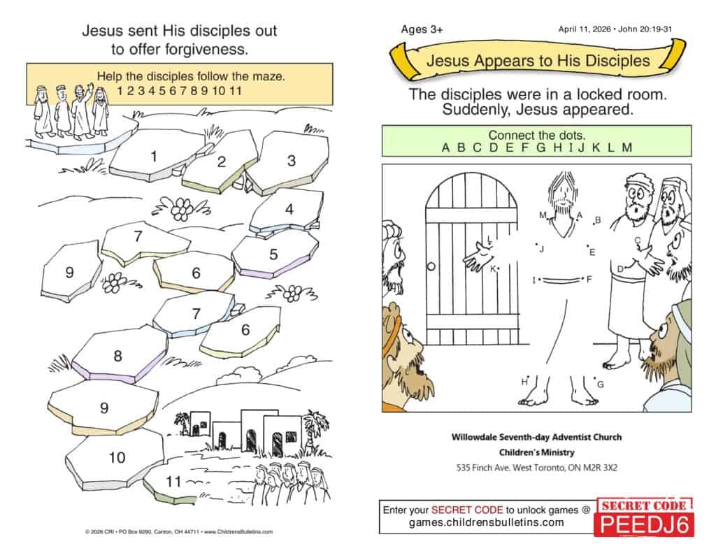 Children’s Worship Bulletins – Sabbath, April 11, 2026