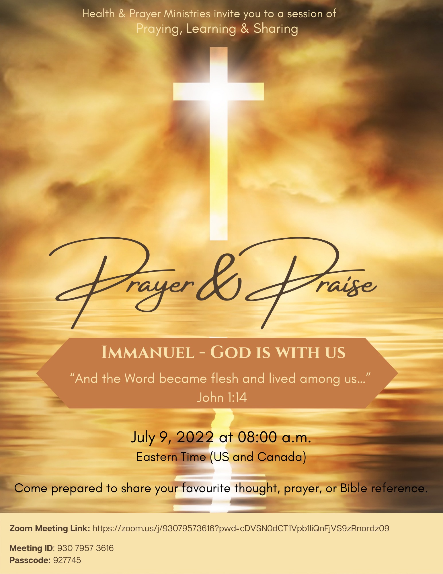 The Health and Prayer Ministries of the Ontario Conference invites us to a session of praying and sharing. This week, there will be a presentation entitled Immanuel – God is with us. You can join by calling (647) 558-0588, or (647) 374-4685, and enter the access code: 930 7957 3616 and password 927745. You may also use the link Zoom link.