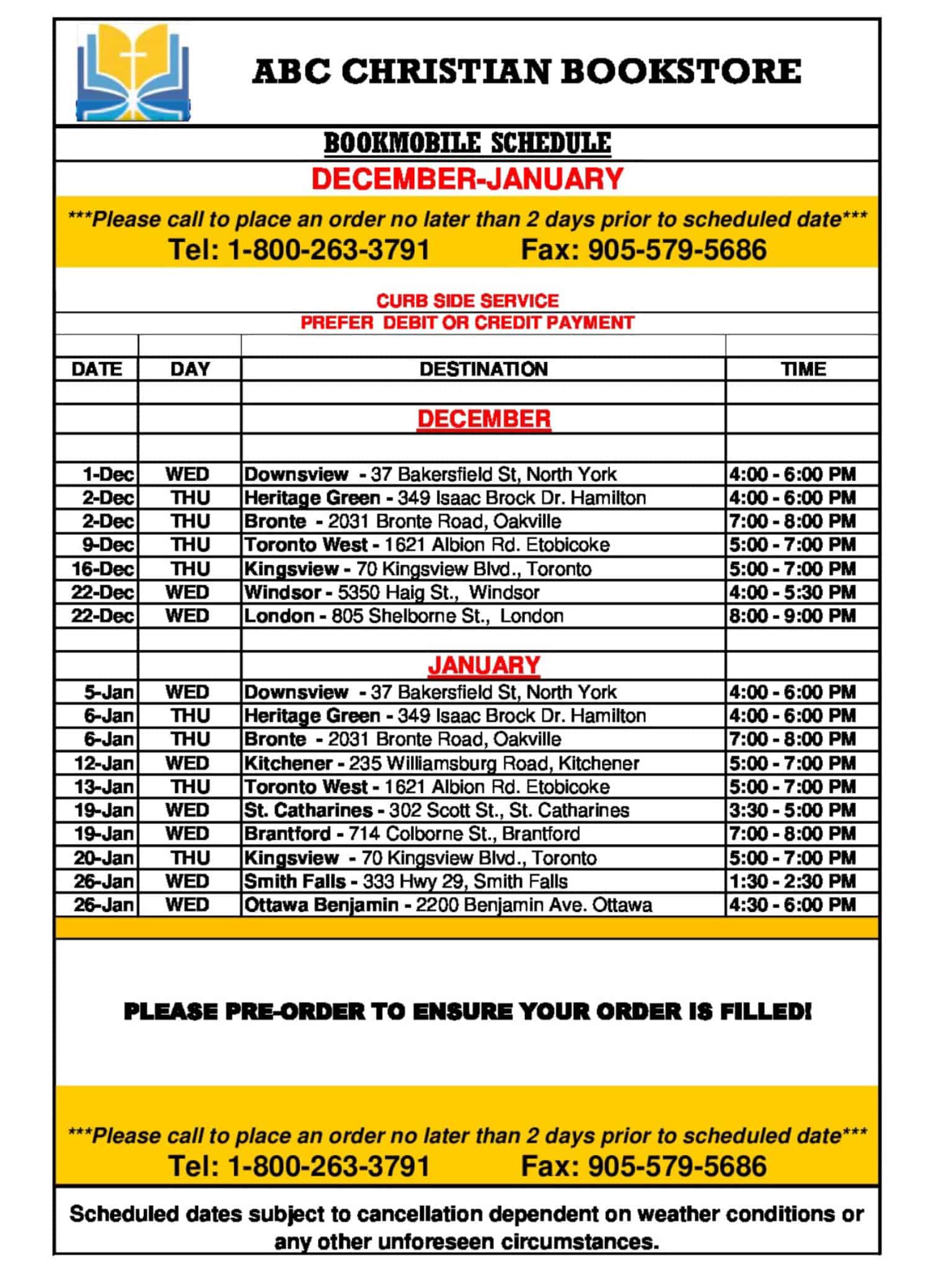 December And January Bookmobile Schedule