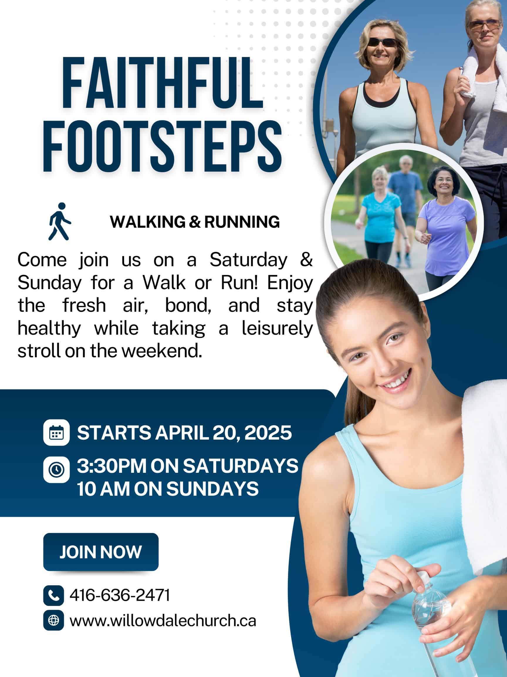 Due to the weather, the Faithful Footsteps Willowdale Walking Club will resume in April. More details will follow.