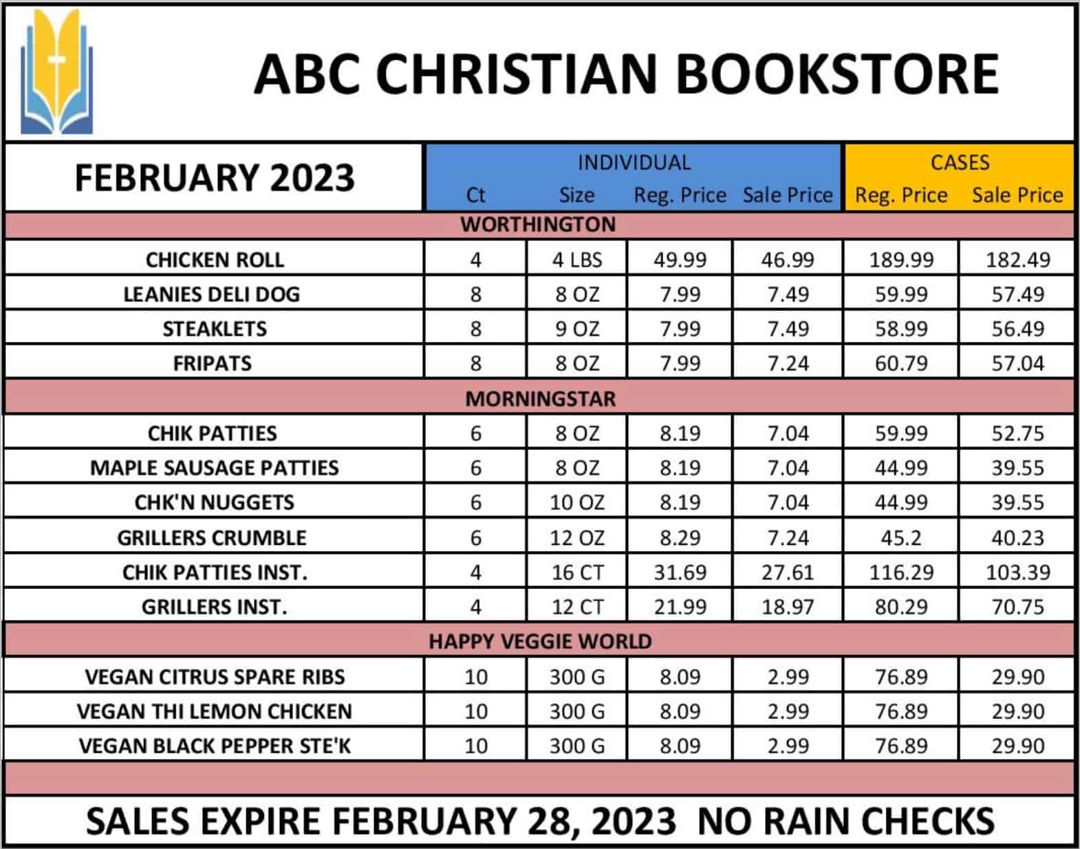 February Food List at ABC Christian Bookstore