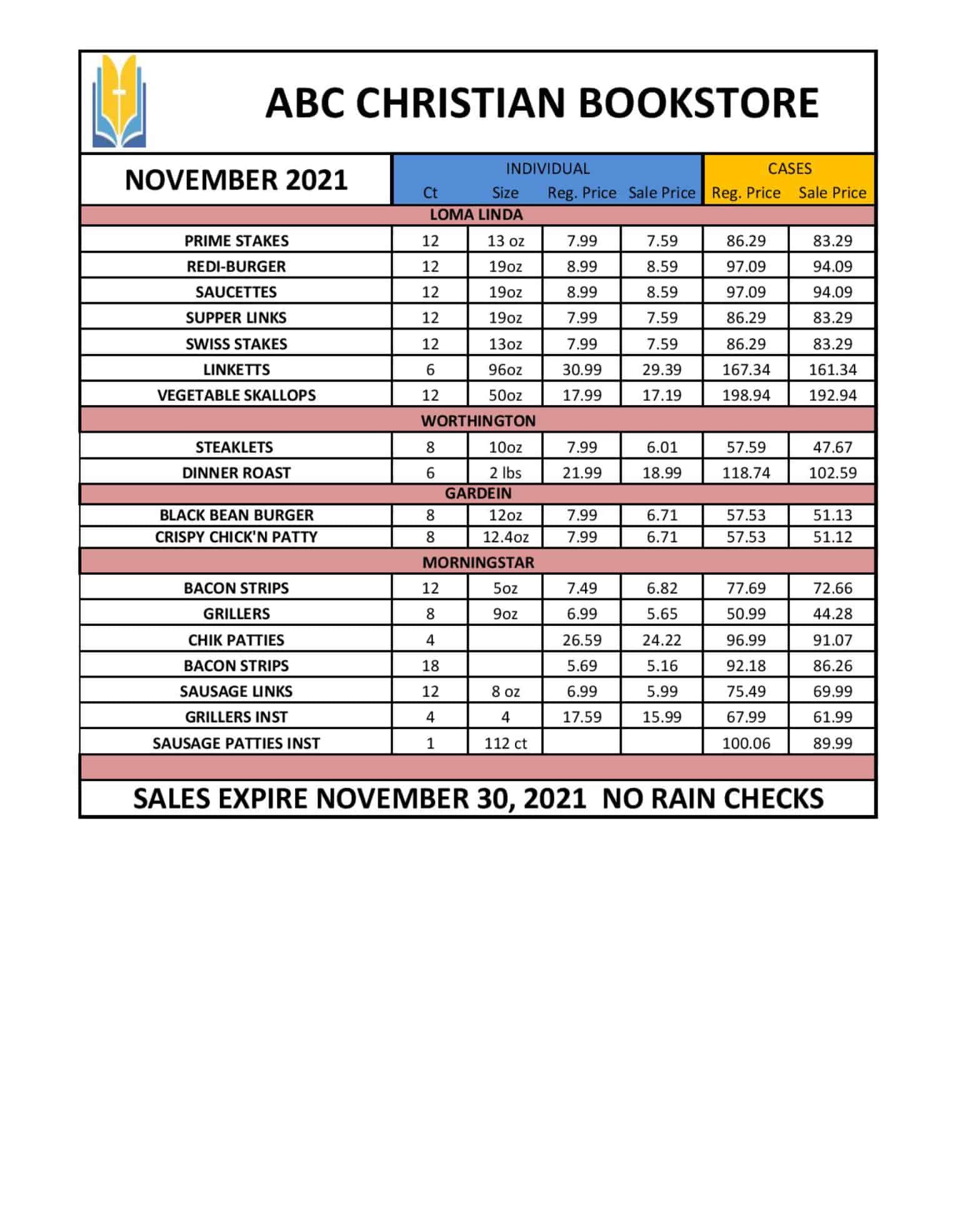 November Food Flyer from ABC Christian Bookstore