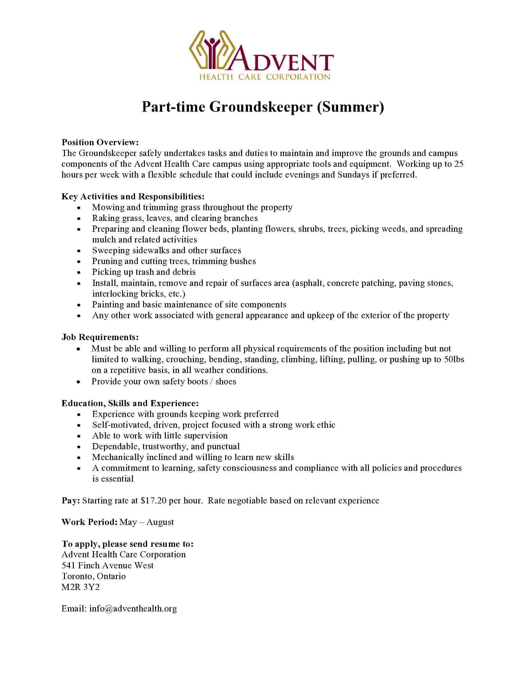 Job Offer: Groundskeeper (Part-Time, Seasonal) at Adventh Health