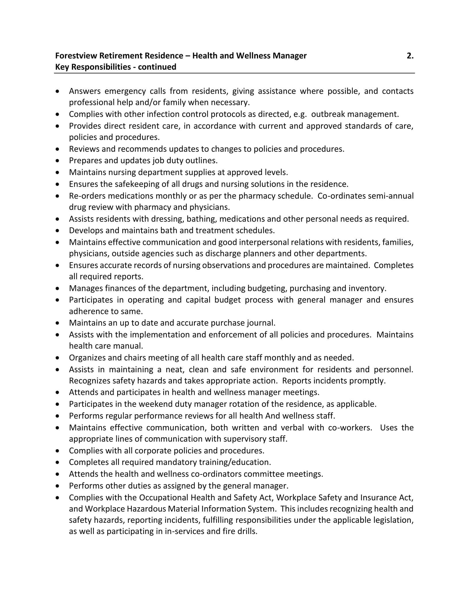 The Forestview Retirement Residence is looking for a Health and Wellness Manager.