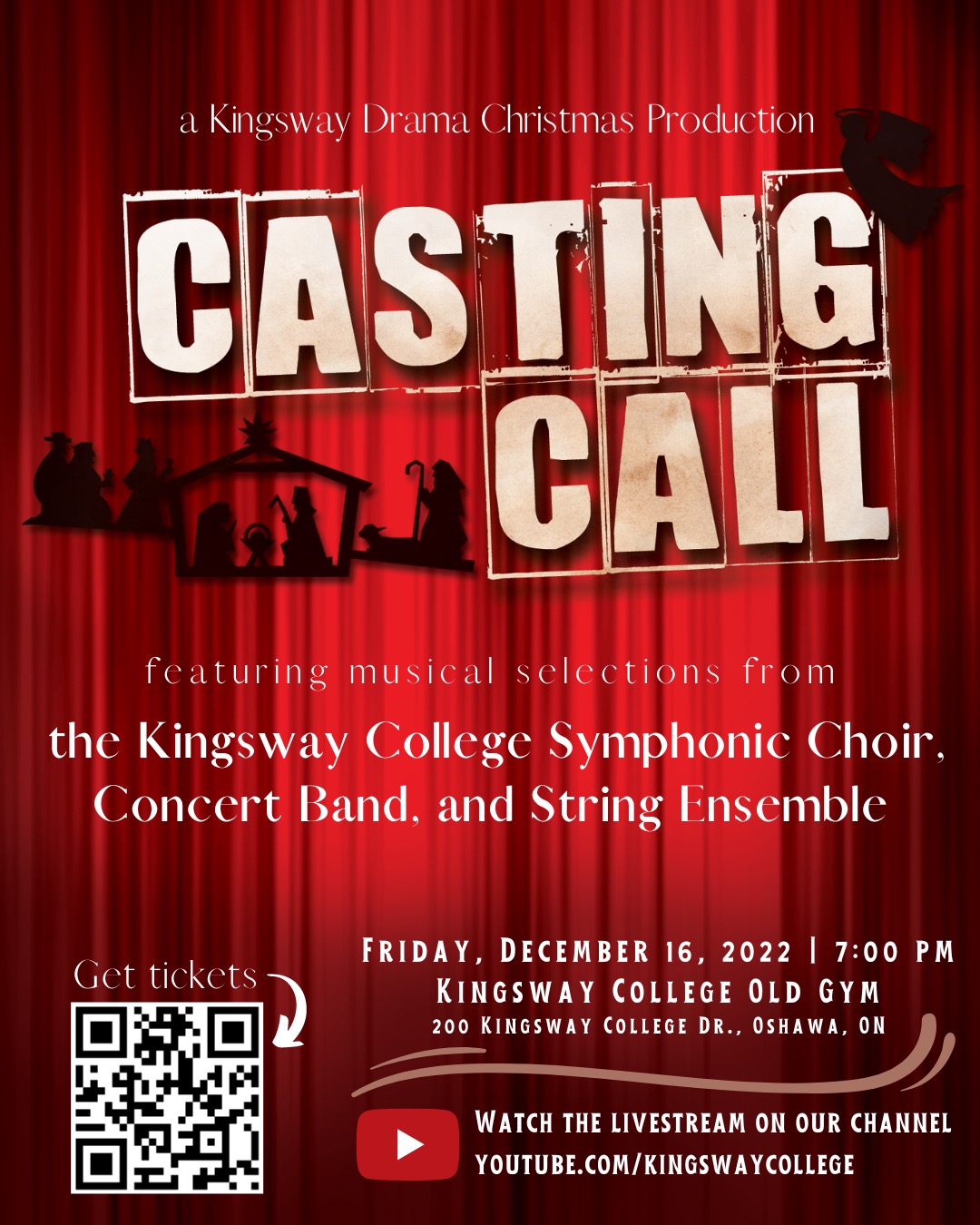 Kingsway College’s Christmas production is happening Friday, December 16, at 7 p.m. Presented by our talented Drama Team, Choir, Band, and String Ensemble.
