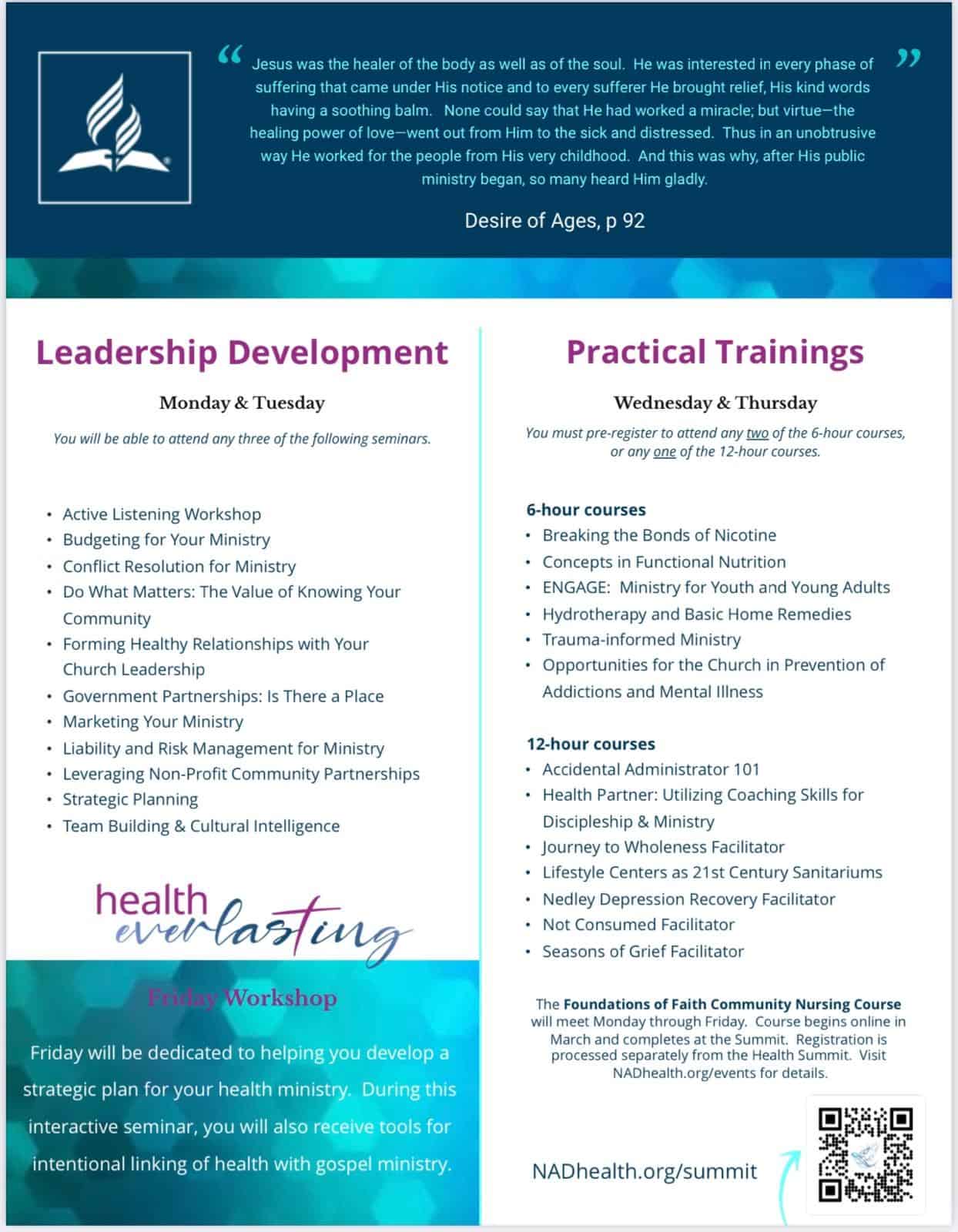 The North American Division will hold a Health Summit from April 2 to 8, 2023 in Lexington, Kentucky, USA. The training, networking sessions, and spiritual emphasis will equip you to be part of a comprehensive health evangelistic effort across the Division while staying focused on your community.