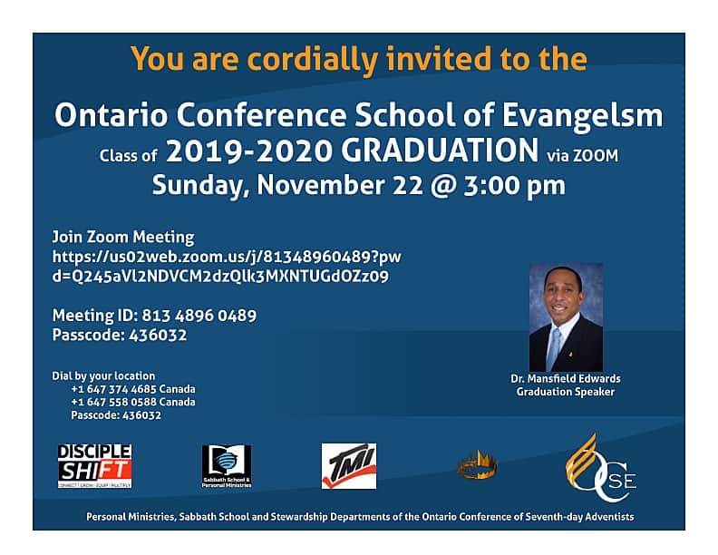 The School of Evangelism Graduation will take place on Sunday, November 22. The Willowdale Church Family commends and congratulates our own Norma Allen, Claudette Charles, and McDonald Enmore as they graduate on Sunday as a part of the Ontario Conference School of Evangelism class of 2019-2020. See the graduation announcement for information on when and how you can view or hear the zoom graduation service.