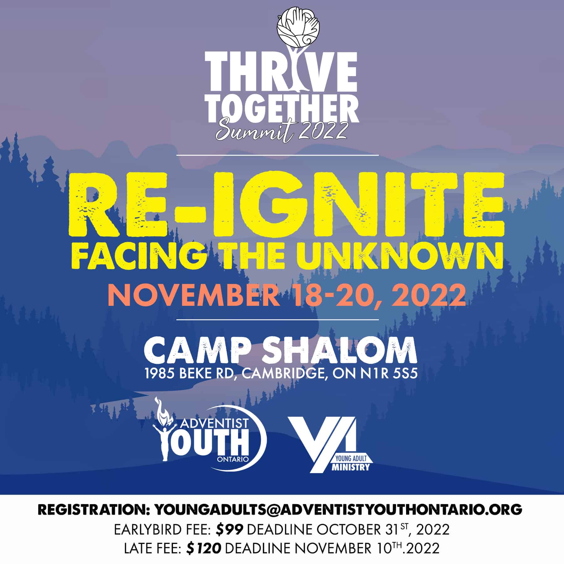 The Thrive Together Summit will be held November 18-20, 2022, at Camp Shalom, Cambridge, ON (see flyer).