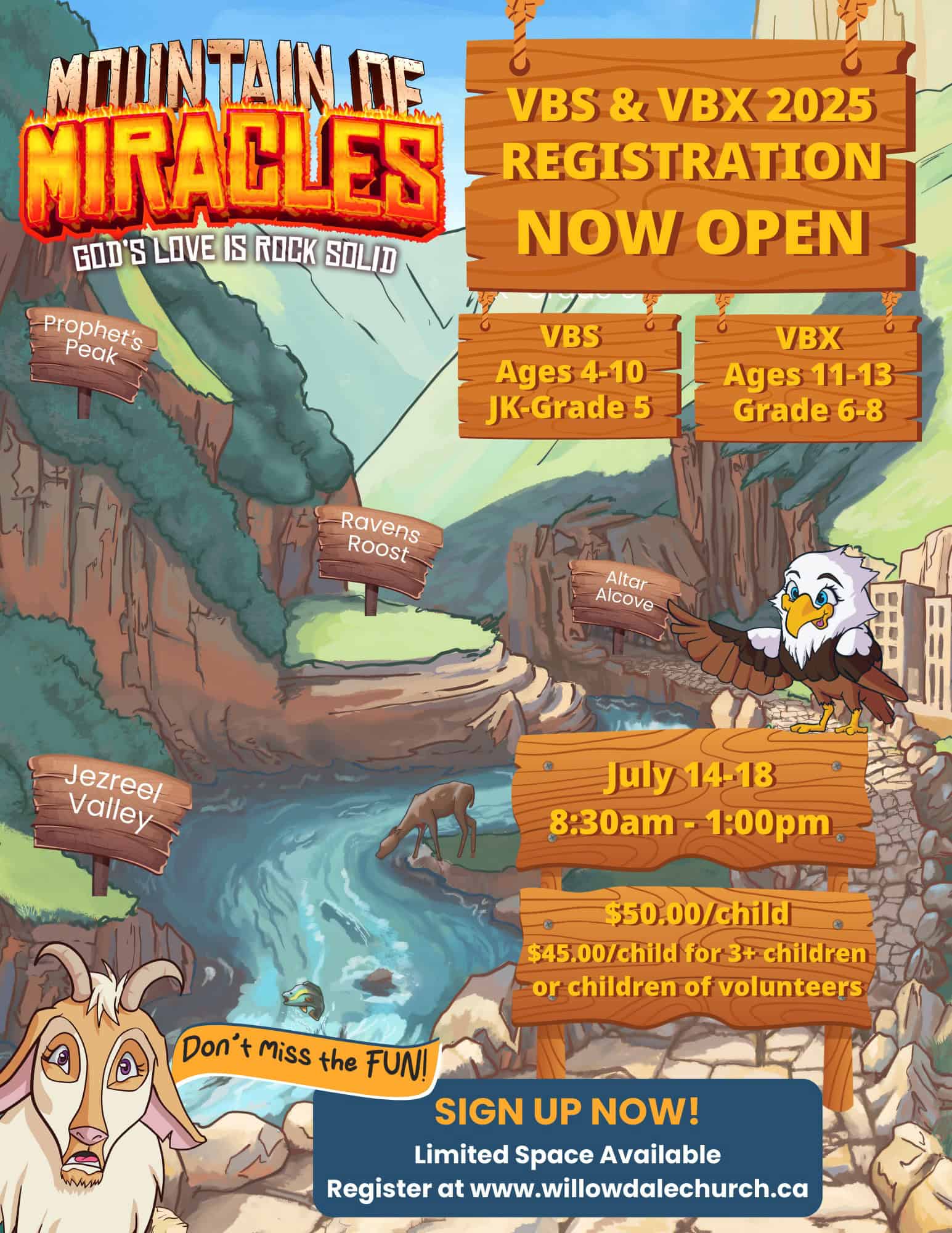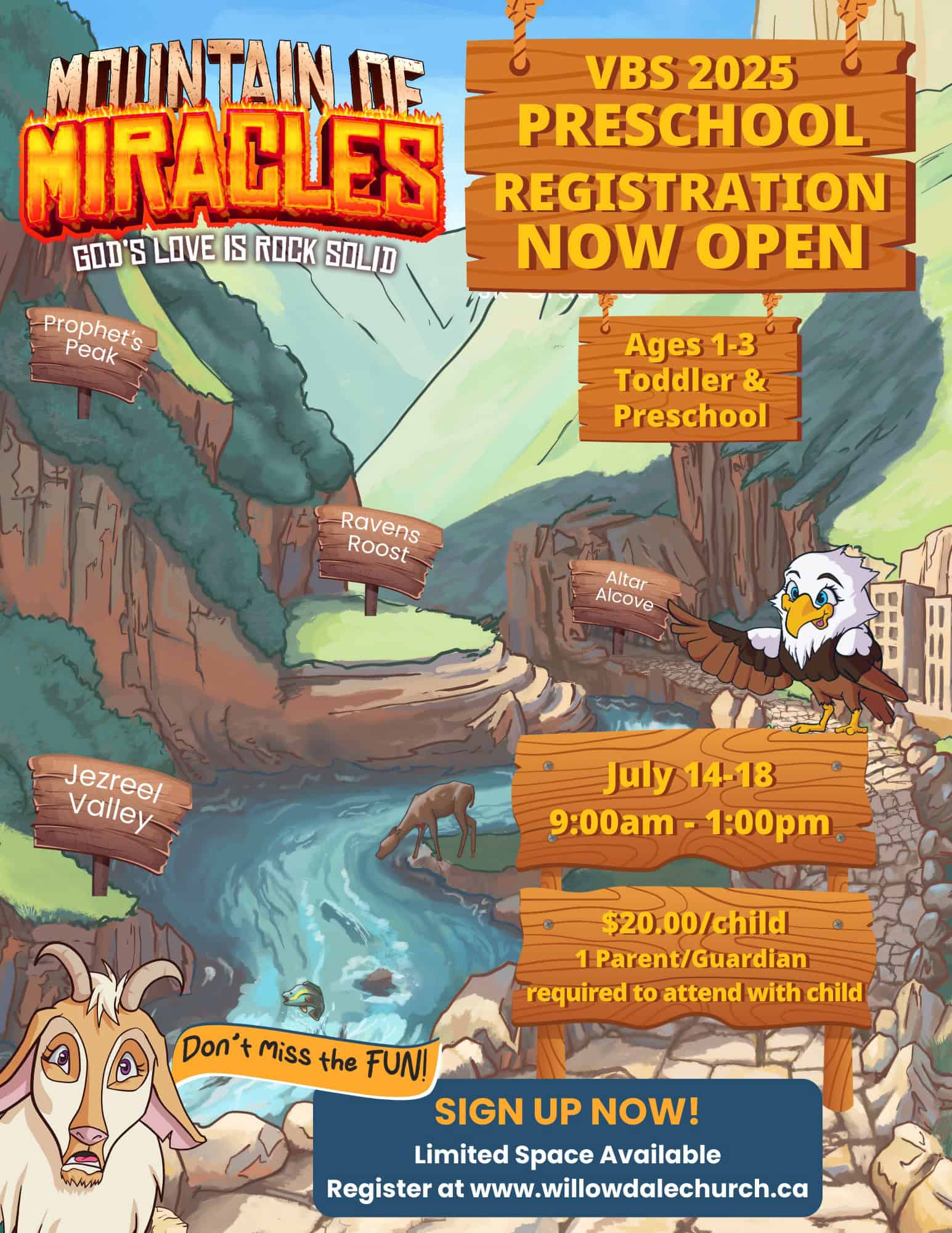 At this Vacation Bible School, kids will explore the Mountain of Miracles, a place where God’s love is rock solid! They’ll love learning more about Jesus through Bible stories from the story of Elijah.
