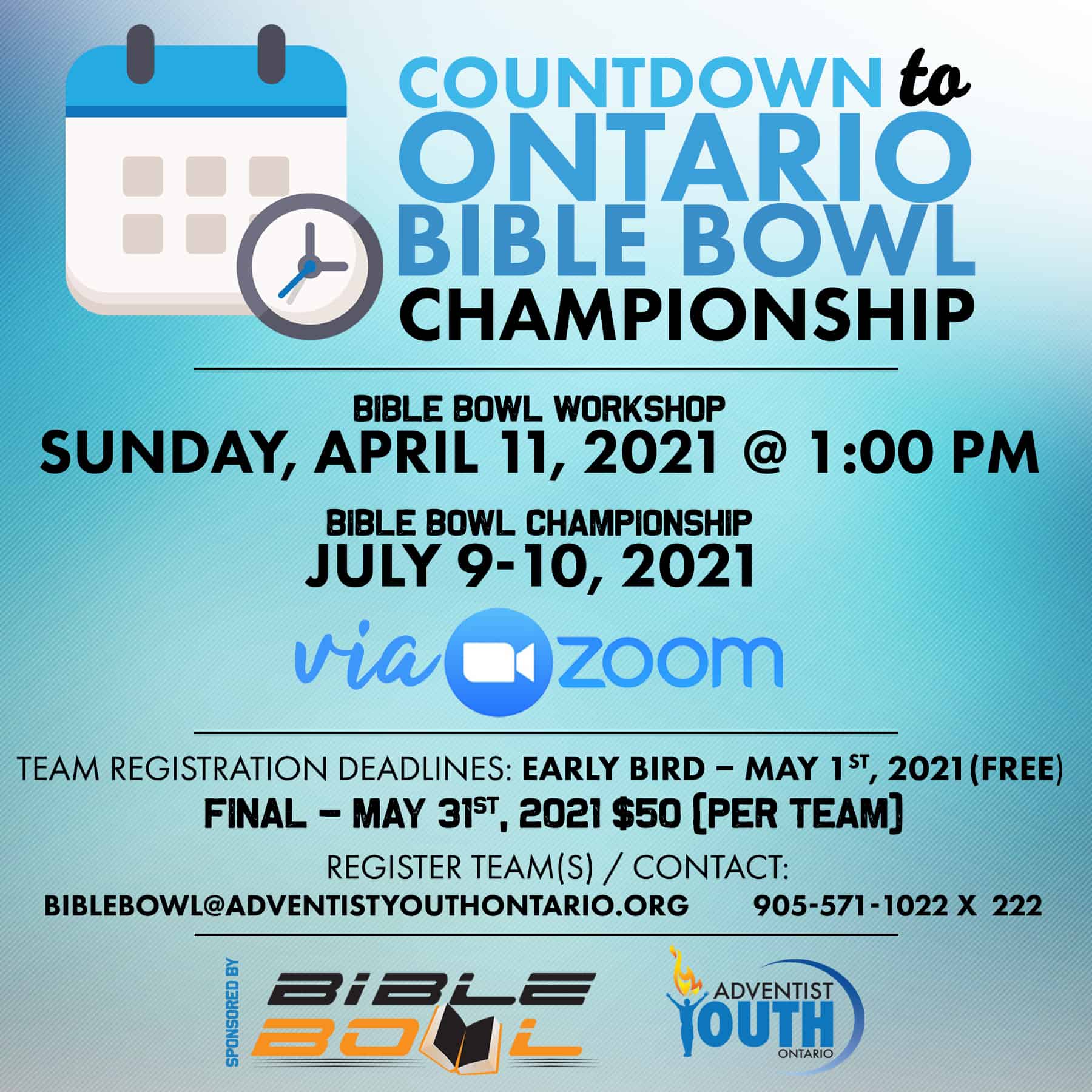 Bible Bowl Championship – Join teams across Ontario in this creative approach to the study of the Word (see flyer & list of books). To register your team(s), see the following registration link:https://forms.gle/3JYApbgfz99gAmAd8
